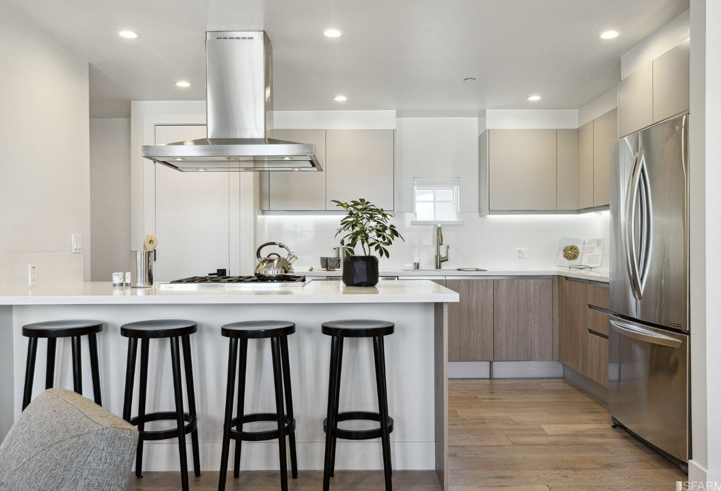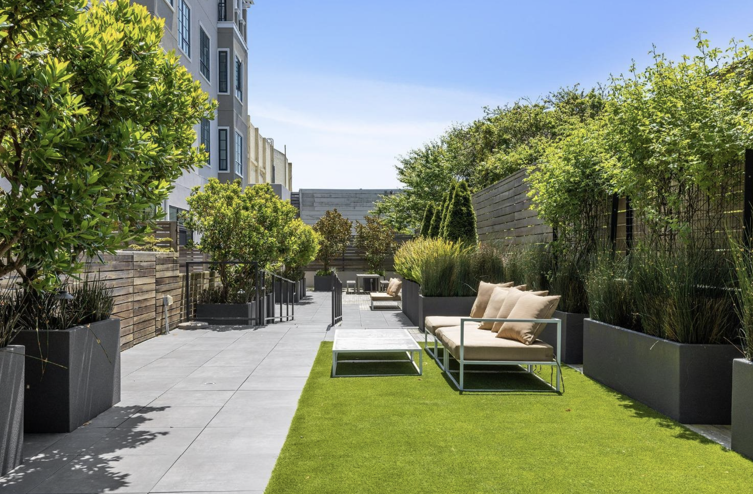 As part of the larger development that includes the historic Alexandria Theater, the Alexandria Residences is a new building with 43 residential units, a small retail space and two levels of underground parking. Designed in a decidedly Mediterranean style, the building reflects the 1920's and 1930's architecture of much of the housing that was built in San Francisco's Richmond neighborhood. The new building features loft-like apartments on the 1st floor with a 200' x 30' outdoor space at the rear yard. The upper floors surround a gracious courtyard at the 2nd floor. With the central courtyard, all of the units have cross-ventilation, a rare commodity for a multi-family building in a dense setting. Units on the upper floor have balconies, some looking east toward Mount Sutro and Downtown and those on the west have views of The Presidio and Golden Gate Bridge.